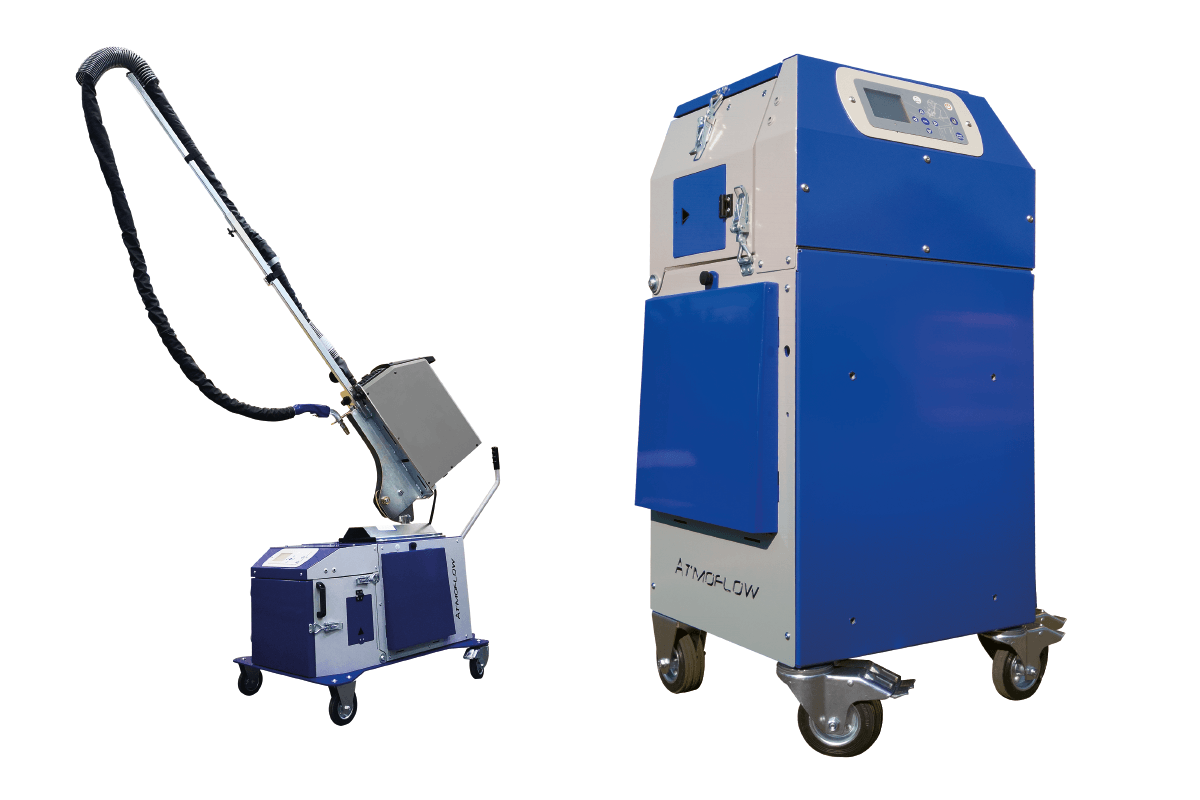 Les groupes aspirants autonomes haute dépression de la gamme ATMOFLOW sont les plus puissants et efficaces du marché. Le nettoyage automatique du filtre par décolmatage pneumatique facilite la maintenance des groupes et permet une aspiration constante. En limitant le contact des utilisateurs avec les poussières de soudage, les risques pour la santé sont minimisés. L’écran LCD couleur permet l’accès aux informations de fonctionnement ainsi que le réglage de certains paramètres, comme la mise en route automatique de l’aspiration indexée sur le temps d’arc. Le groupe intègre une carrosserie robuste adaptée à une utilisation industrielle utilisable en trois configurations :
